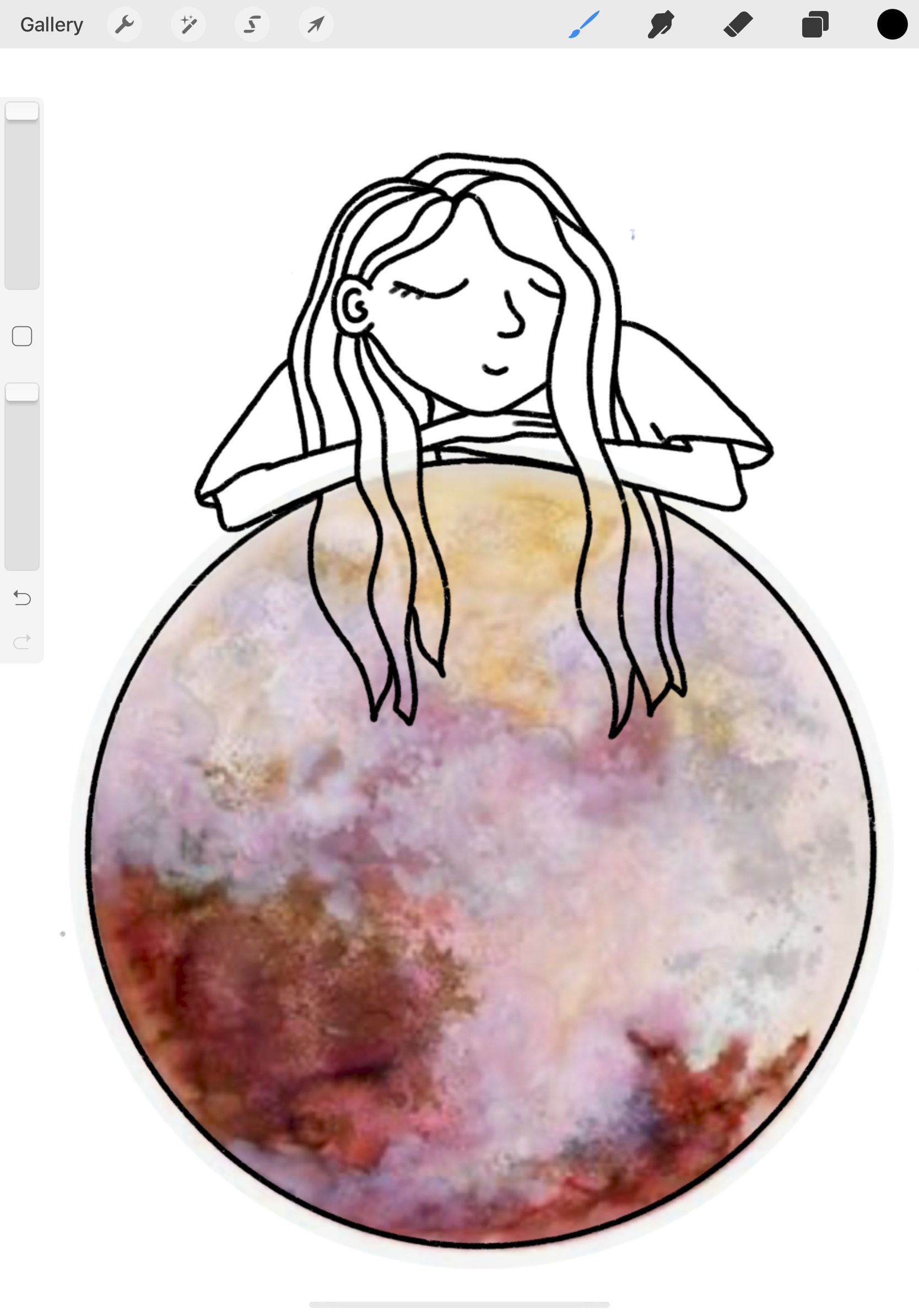 My good friend, Chloe, asked me to create a piece for her new home with her fiancée! They say “I love you to Pluto and back” so I leaned on that for inspiration. The final piece is a portrait of her peacefully resting on Pluto to visualize the feeling you get when you’ve met your person in life.