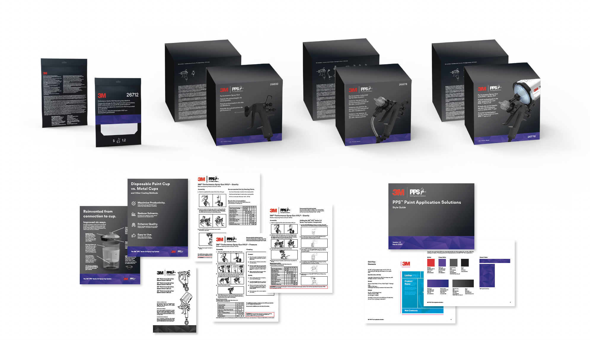 3M’s Automotive Aftermarket Division (AAD) introduced a new line of products amplifying their professional spray gun portfolio. Multiple packaging and marketing styles required a fluid packaging design to allow effective branding and customer recognition. With the introduction of a 3M corporate design guideline and emerging AAD design style, certain color palettes and information standards were used. Lastly, this packaging was created with the idea that more premium products will follow this launch so the design would need to accommodate.